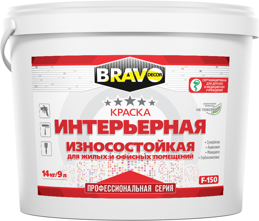 Предназначена для защиты и декоративной отделки поверхностей, подверженных сильному износу внутри жилых, офисных и промышленных, а также во влажных помещениях (ванные и туалетные комнаты). Краска сертифицирована для внутренней окраски дошкольных и лечебно-оздоровительных и других организаций, требующих обработку дезинфицирующими составами.